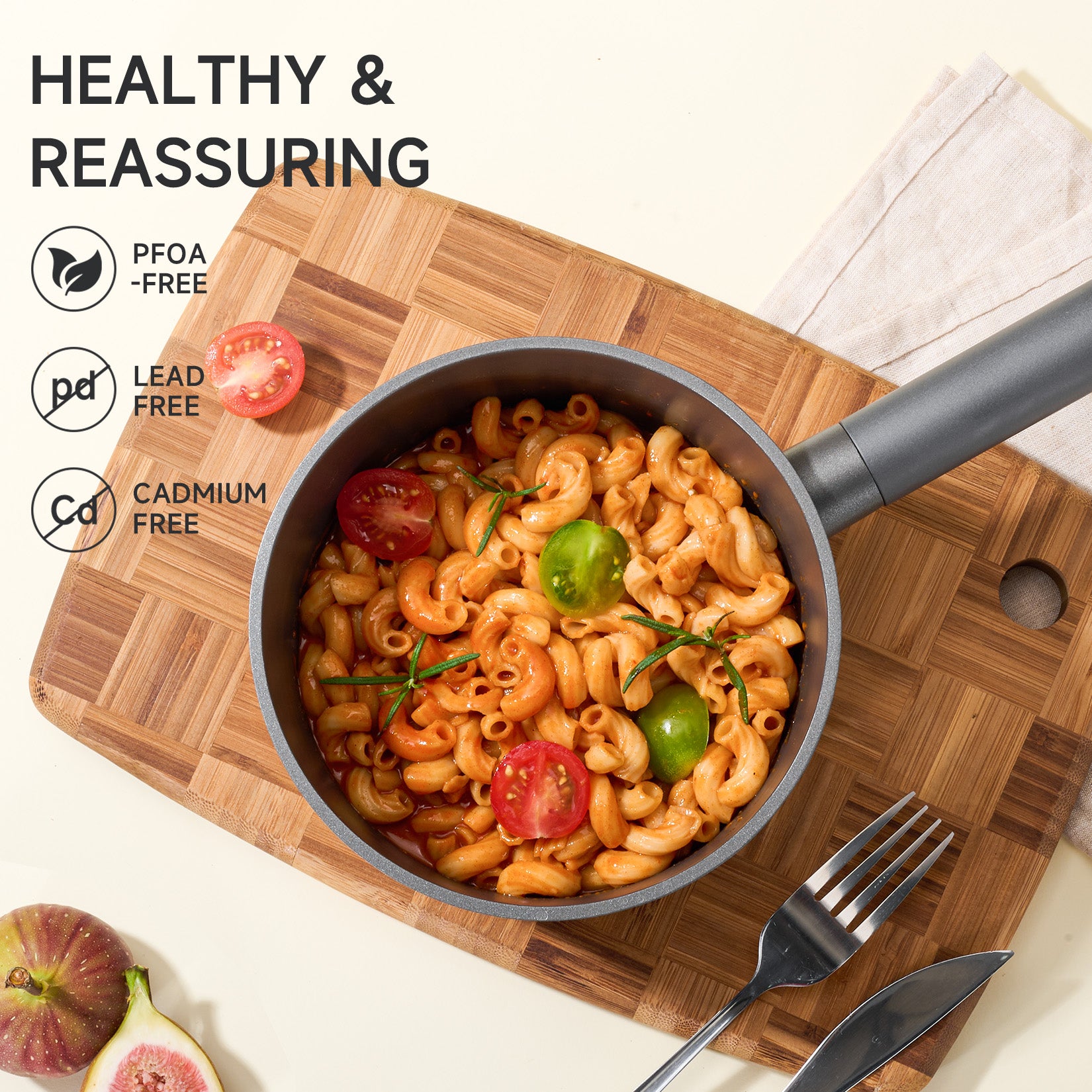 | Non-Toxic | 100% non toxic materials, Free of PFOAs, PTFEs, other PFAs, lead, cadmium, and nanoparticles |