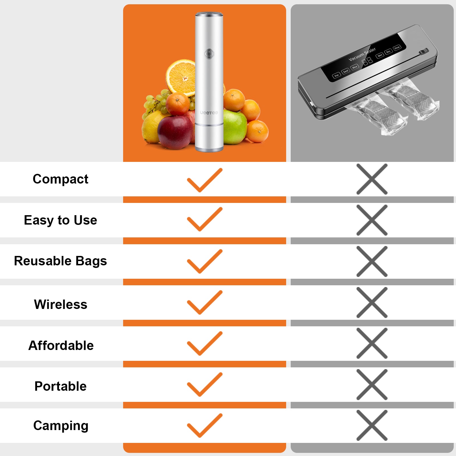 - Powerful Performance, Outdoor Ready: 60kPa suction power + 2.5L/min vacuum speed: Rapidly extracts air to lock in freshness, outperforming standard handheld models. 1200mAh battery delivers 2 hours of continuous use per full charge, supporting over 500 cycles—perfect for camping and travel.